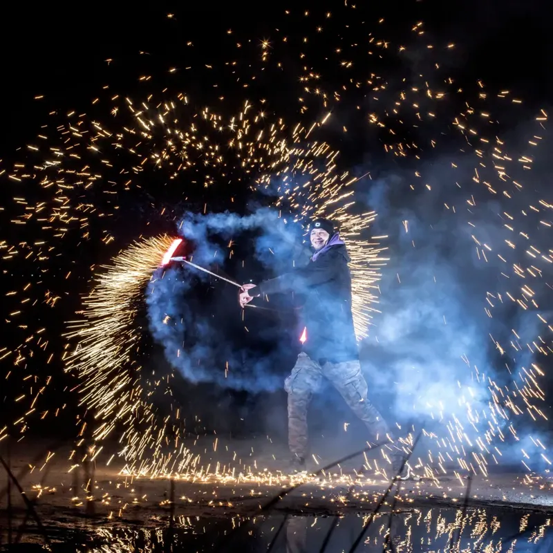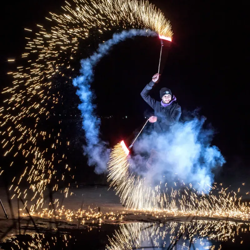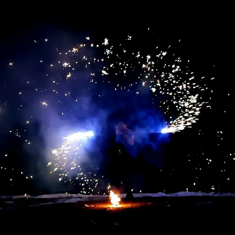 по коже - при прямом воздействии искр - чувствуется, но ожогов не оставляет.