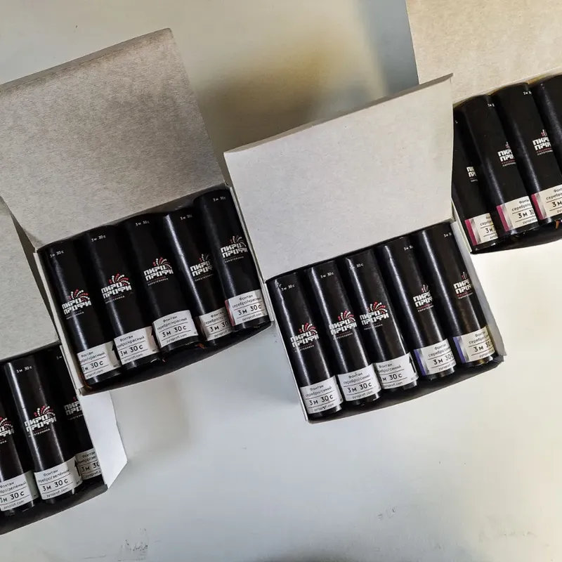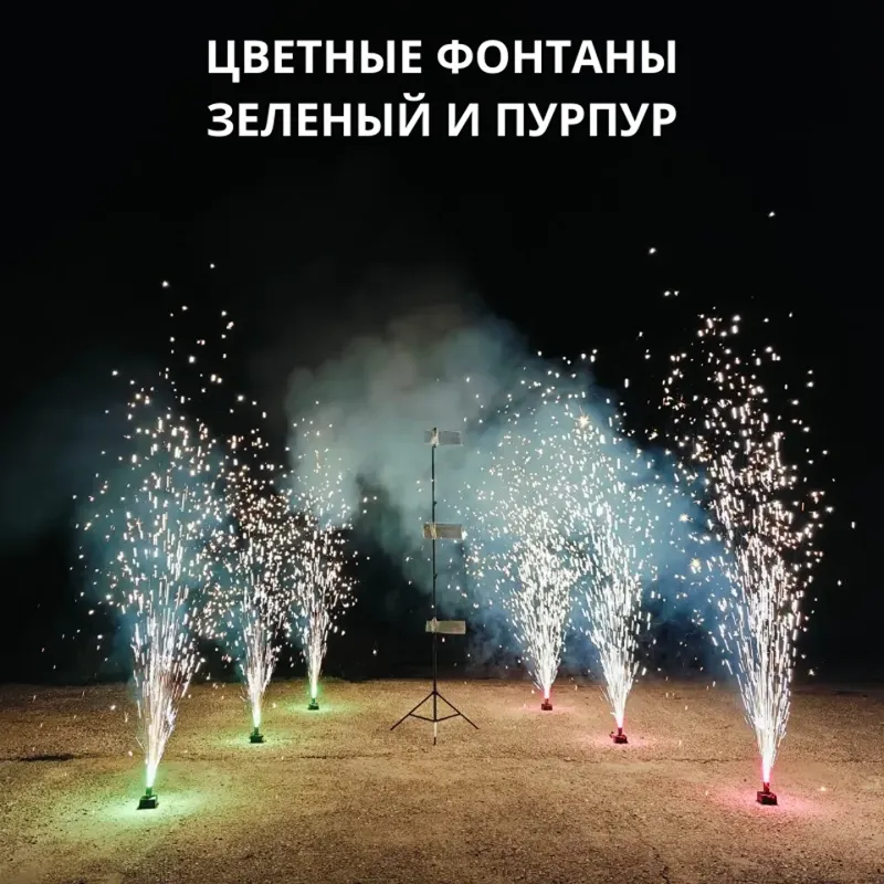 Сценические цветные малодымные фонтаны ПироПрофи (холодные фонтаны, мало запаха) высотой 3м. Российская Пиротехника.