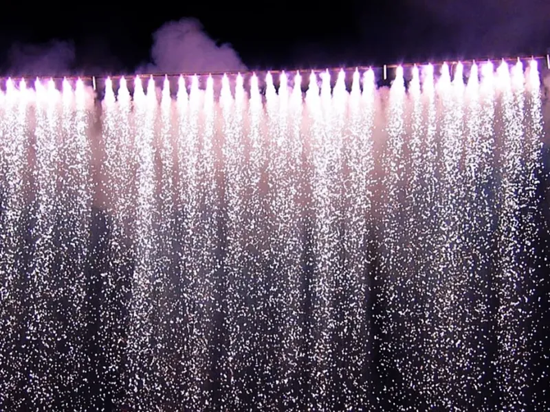 Огнепад сценический (водопад, пиродождь). Бездымный, мало запаха. Российская Пиротехника.