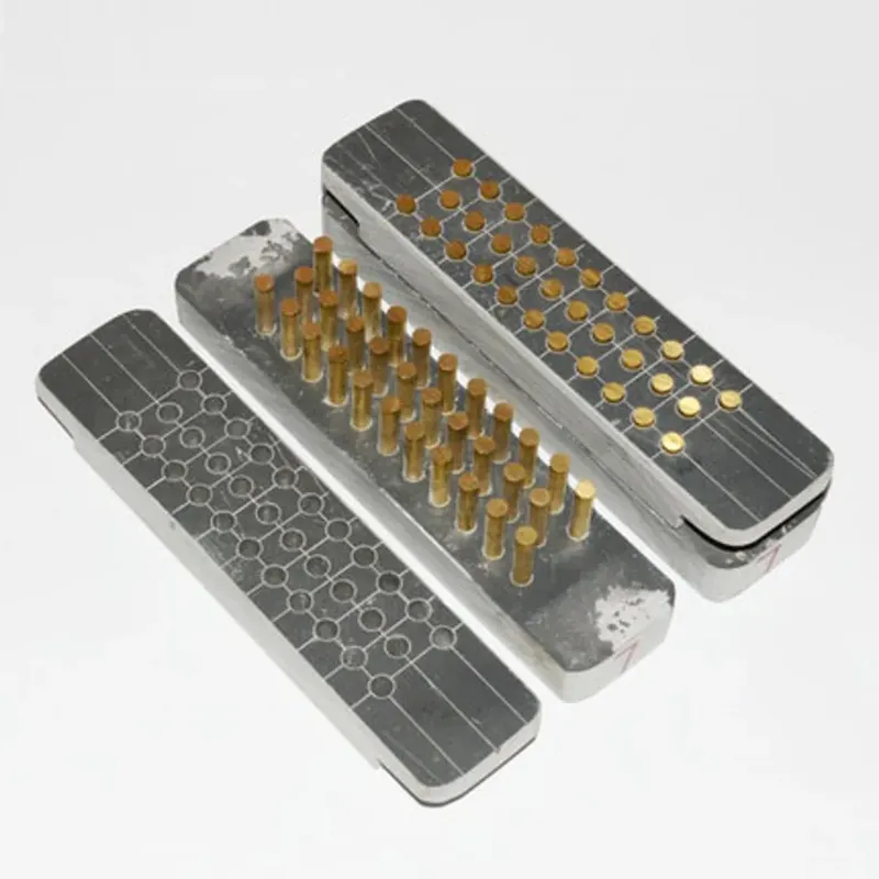 - Верхнаяя часть с пуансонами - композит, нижняя с отверстиями - алюминий