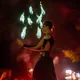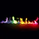 Горит цветным пламенем, за счет окрашивания солями металлов (в различные цвета).